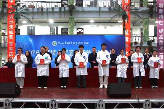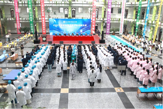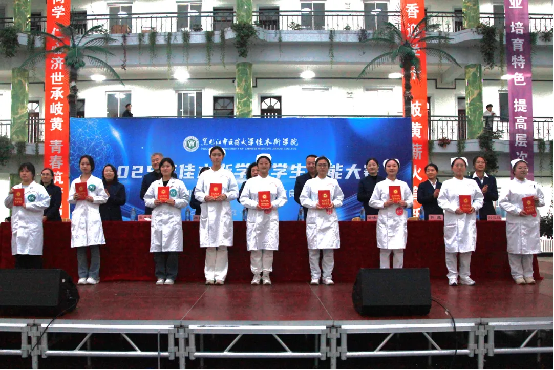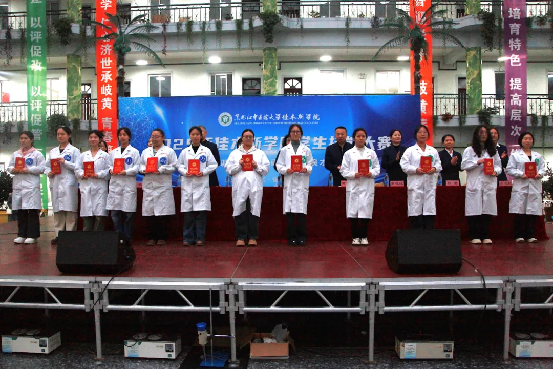 为提高医学人才培养质量,在校园内营造“比、学、赶、帮、超”的良好学习氛围,11月14日,学院在教学楼大厅成功举办以“赛训赋能展风姿,砺技笃行育良才”为主题的2025年学生技能大赛。学院院长张丽宏、副院长黄敬文、各专业部主任及副主任出席此次大赛。大赛由教务科科长鲁光宝主持。