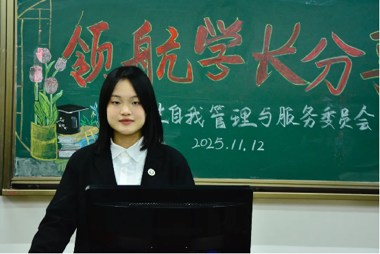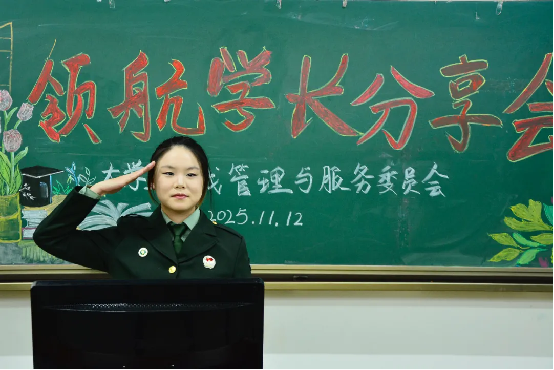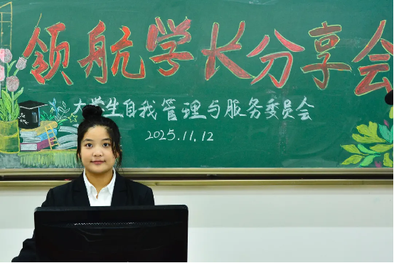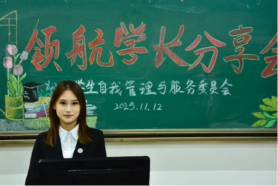 11月12日,学院在图书馆北1教室开展领航学长经验分享会。学院院长张丽宏、副院长黄敬文、学生科负责人侯明、团委副书记徐千惠、各专业部党支部书记及学生科老师参加活动。学院各专业部学生代表200余人现场聆听,2025级新生通过线上直播的方式在教室观看。