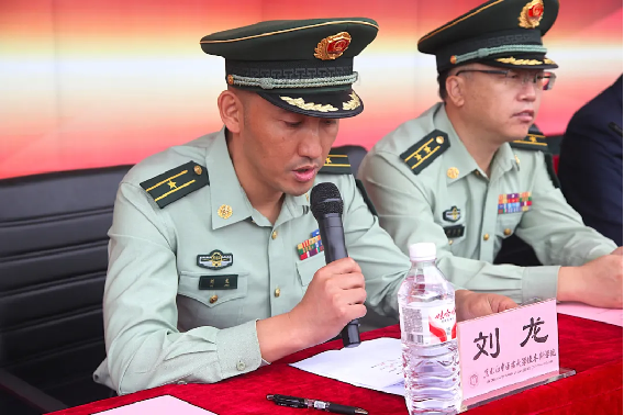 武警某部机动大队大队长刘龙宣读《军训纪律管理细则》