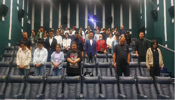 影片开映前,学院党委书记、工会主席杜徽带领全体教师肃立默哀一分钟,悼念死于731部队细菌实验的同胞。影院内静穆无声,唯有敬意与哀思在空气中流淌。
