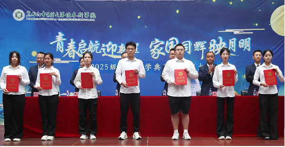 9月24日,学院在教学楼阳光大厅隆重举行2025级新生开学典礼暨表彰奖励大会。学校党委常委、副校长张洋,学院党委书记杜徽,院长张丽宏,党委副书记张勇,副院长黄敬文,副院长夏雪出席典礼,并为获奖学生集体和个人代表颁奖。学校党委常委、副校长张洋,院长张丽宏讲话,副书记张勇主持开学典礼。