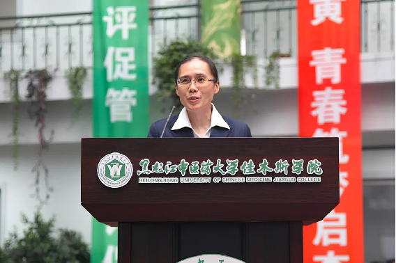 张丽宏代表全院师生向2025级新同学致以最热烈的欢迎,并以“传承岐黄薪火,担当时代使命”为题,勉励同学们,要倍加珍惜迈入中医药高等学府的学习契机,既要树立高远志向,以奋发图强的姿态夯实学识根基;更要厚植家国情怀,将个人理想融入人民健康事业与祖国中医药振兴大业,用青春与实干书写属于新一代中医药人的时代答卷。