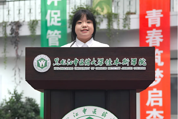 在校生代表2023级康复治疗学专业贾菲菲同学发言