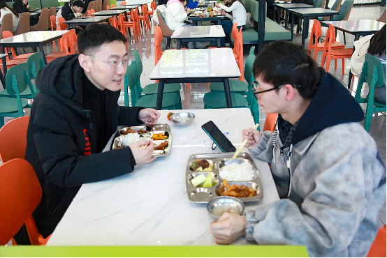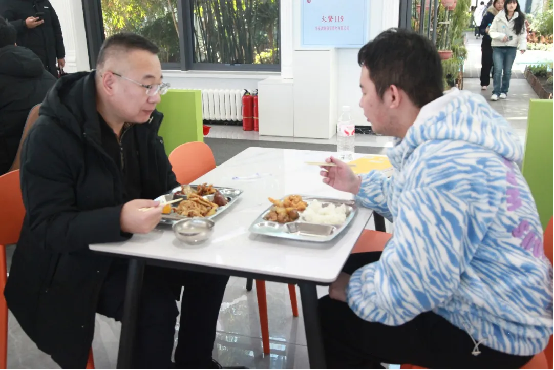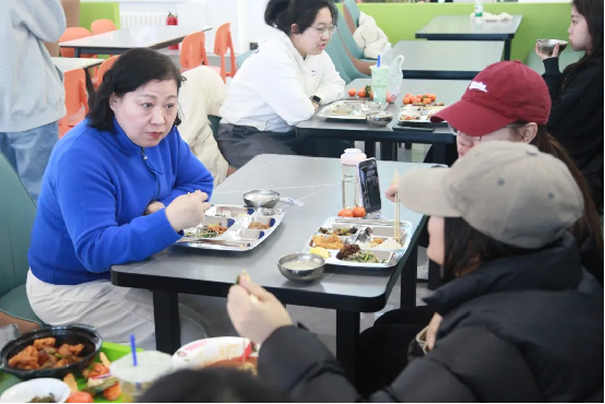 陪餐现场,领导班子成员与学生一同自主选餐,沉浸式融入食堂就餐氛围,全方位体验升级后食堂的菜品品质与服务细节。就餐过程中与身边学生深入攀谈,仔细询问大家对新菜品口味、分量的满意度,以及对菜系搭配、窗口设置的意见建议,认真倾听师生心声,细致记录大家的就餐需求。